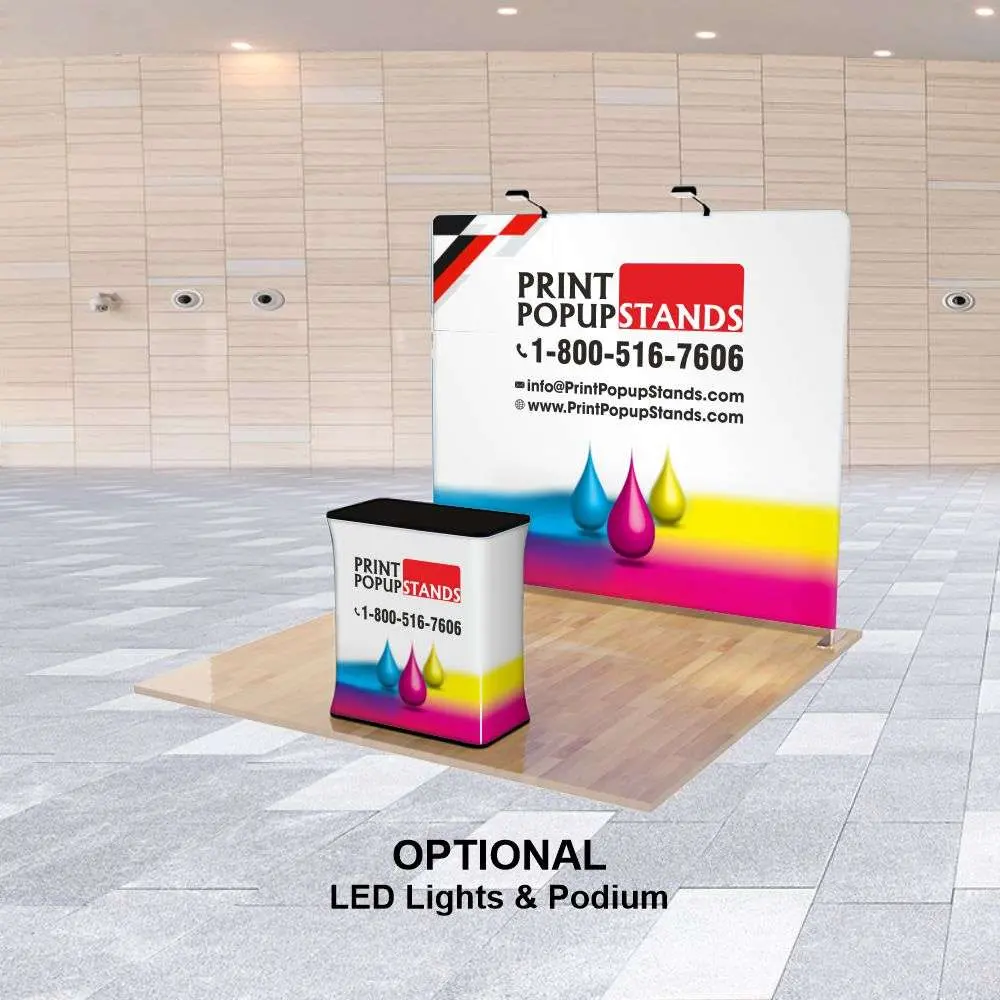 8 ft Straight Tension Fabric Display with their quick and simple-to-assemble pop-up displays, Print Popup Stands provides a hassle-free solution for your display needs. A quick setup is ensured by the pop-up mechanism.