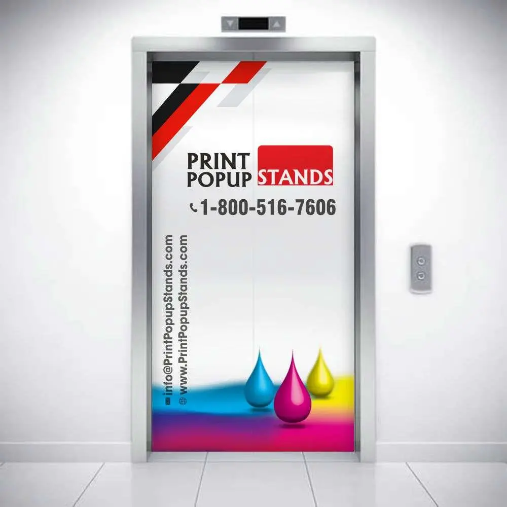 Elevator Wraps can transform your building’s elevators from Print PopUp Stands. Made with premium 3M vinyl material, our wraps add branding and style to elevator doors, floors, and walls. Elevator graphics are a cost-effective solution to refresh the look of your elevators without expensive renovations. Elevate your building’s image with our high-quality elevator vinyl wraps.